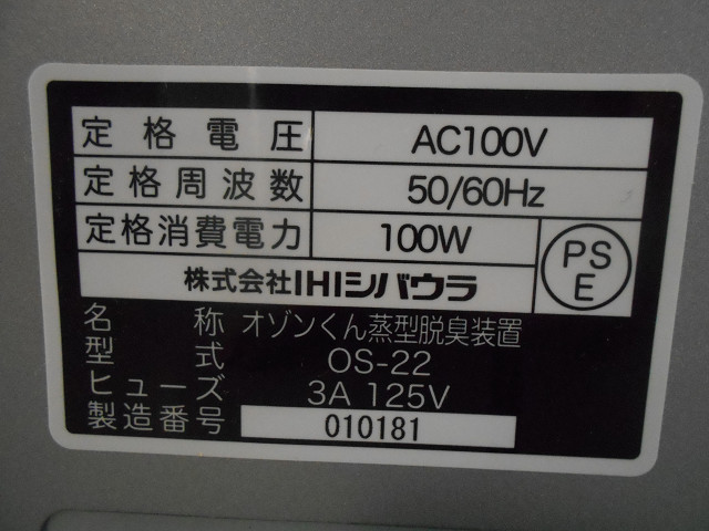 オゾンくん蒸型脱臭装置価格 ¥300,000(税別、送料含む)